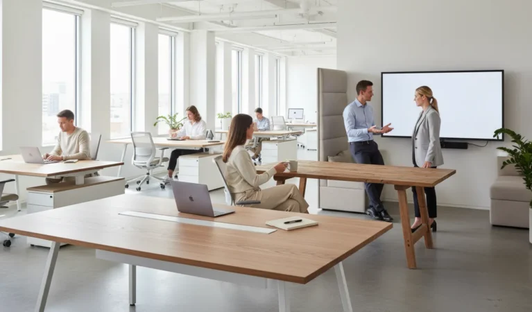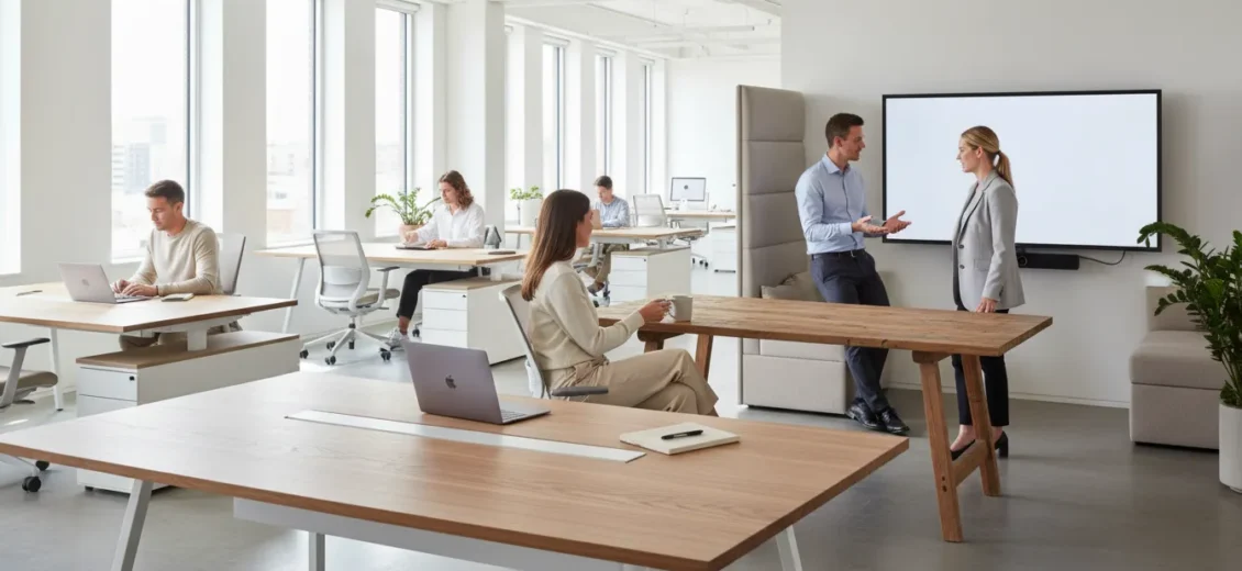 High-density environments are common in sales-heavy organizations, call centers, or early-stage startups that prioritize high energy and constant communication. In these settings, the majority of the floor plan is dedicated to open-plan seating. While this maximizes the number of people in a smaller footprint, it requires a significant investment in shared resources—such as phone booths and meeting rooms—to ensure that the density does not compromise the ability to conduct deep work or private calls.